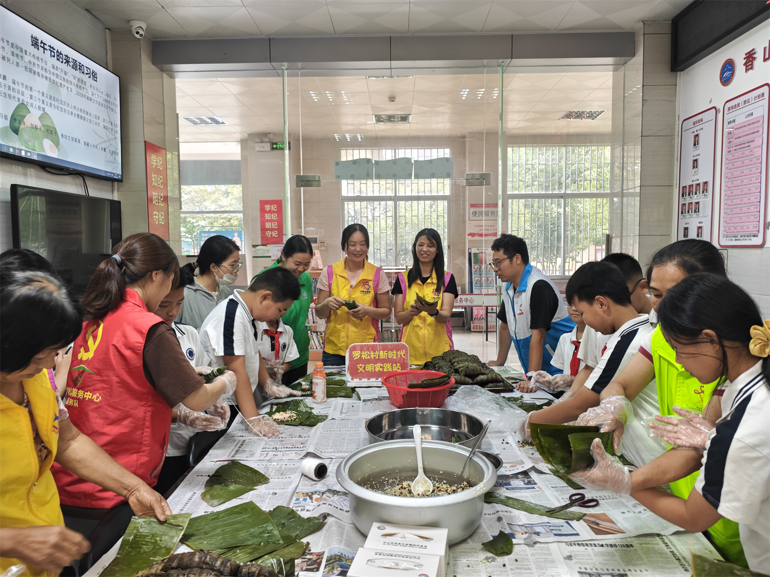 活動(dòng)伊始,禁毒社工向?qū)W生們展示仿真毒品模型和禁毒宣傳單張,用簡單易懂的語言向?qū)W生們介紹毒品的種類、危害以及防范方法。隨后,工作人員講授了端午節(jié)的來源及習(xí)俗,并教授學(xué)生們?nèi)绾伟兆樱瑢W(xué)生們紛紛拿起粽葉跟著工作人員忙活起來,不一會(huì)兒,一只只飽滿的粽子便呈現(xiàn)了。